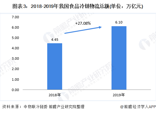 广阔的食品冷链需求促进了食品冷链物流总额的快速增长。据中物联冷链委数据显示,2019年,我国食品冷链物流总额达6.1亿元,同比增长27.08%。